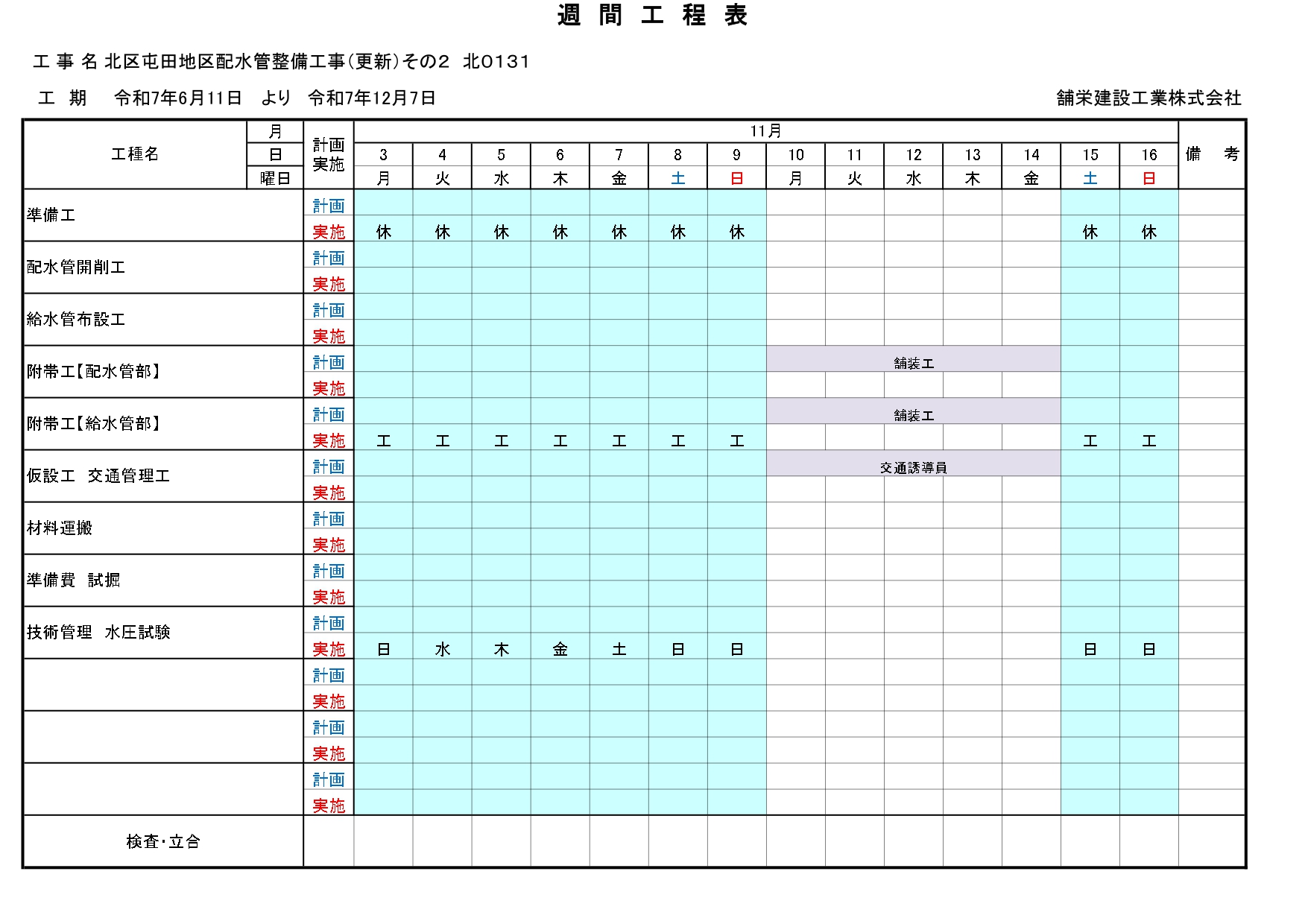 週間工程