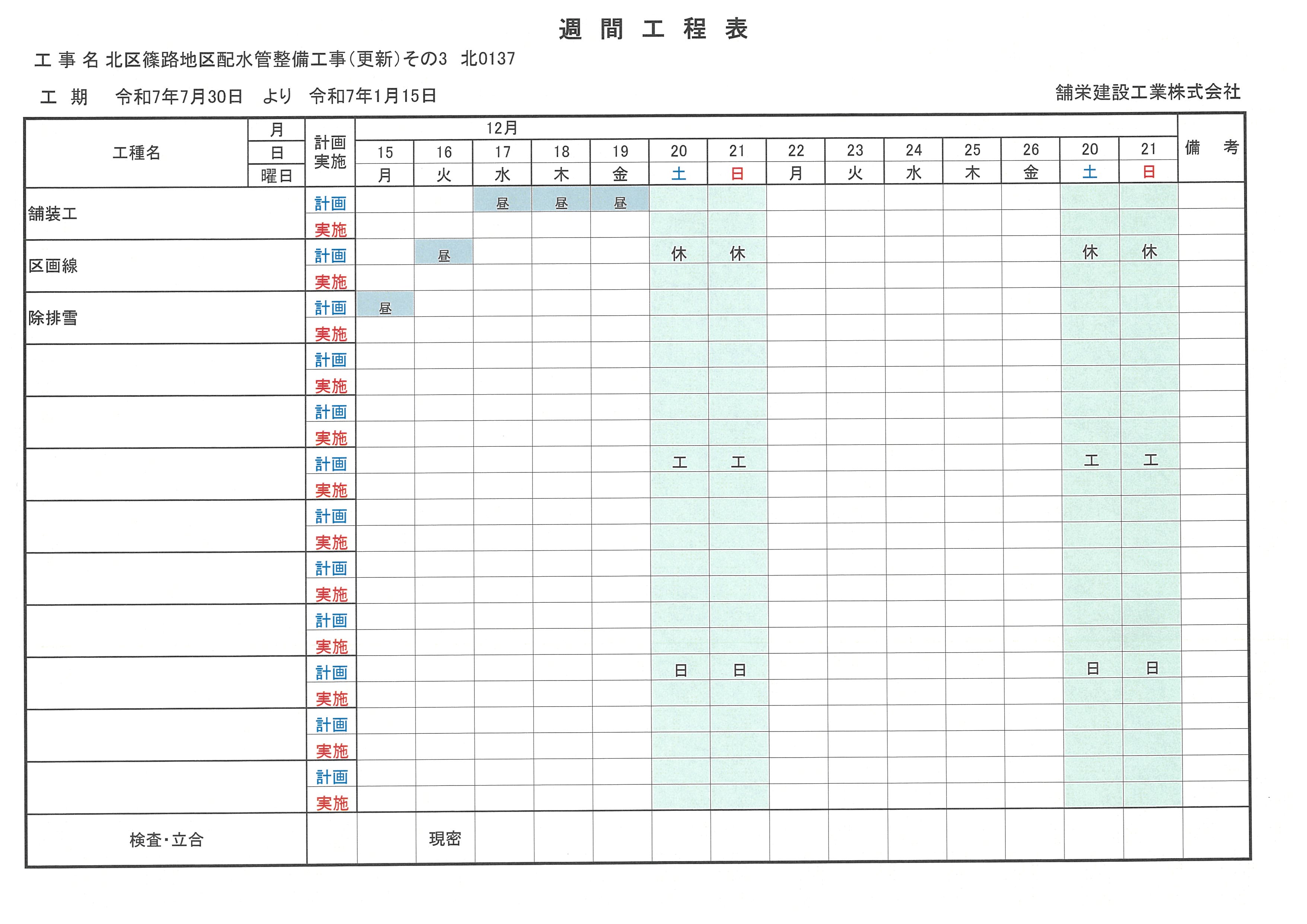 週間工程表