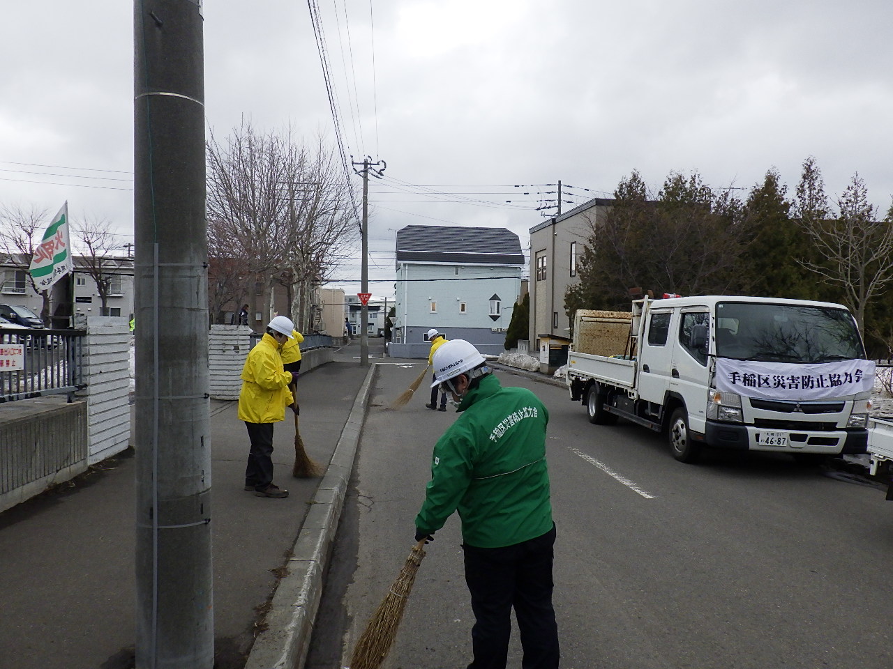 手稲区災害防止協力会 街頭啓発及び小学校通学路清掃