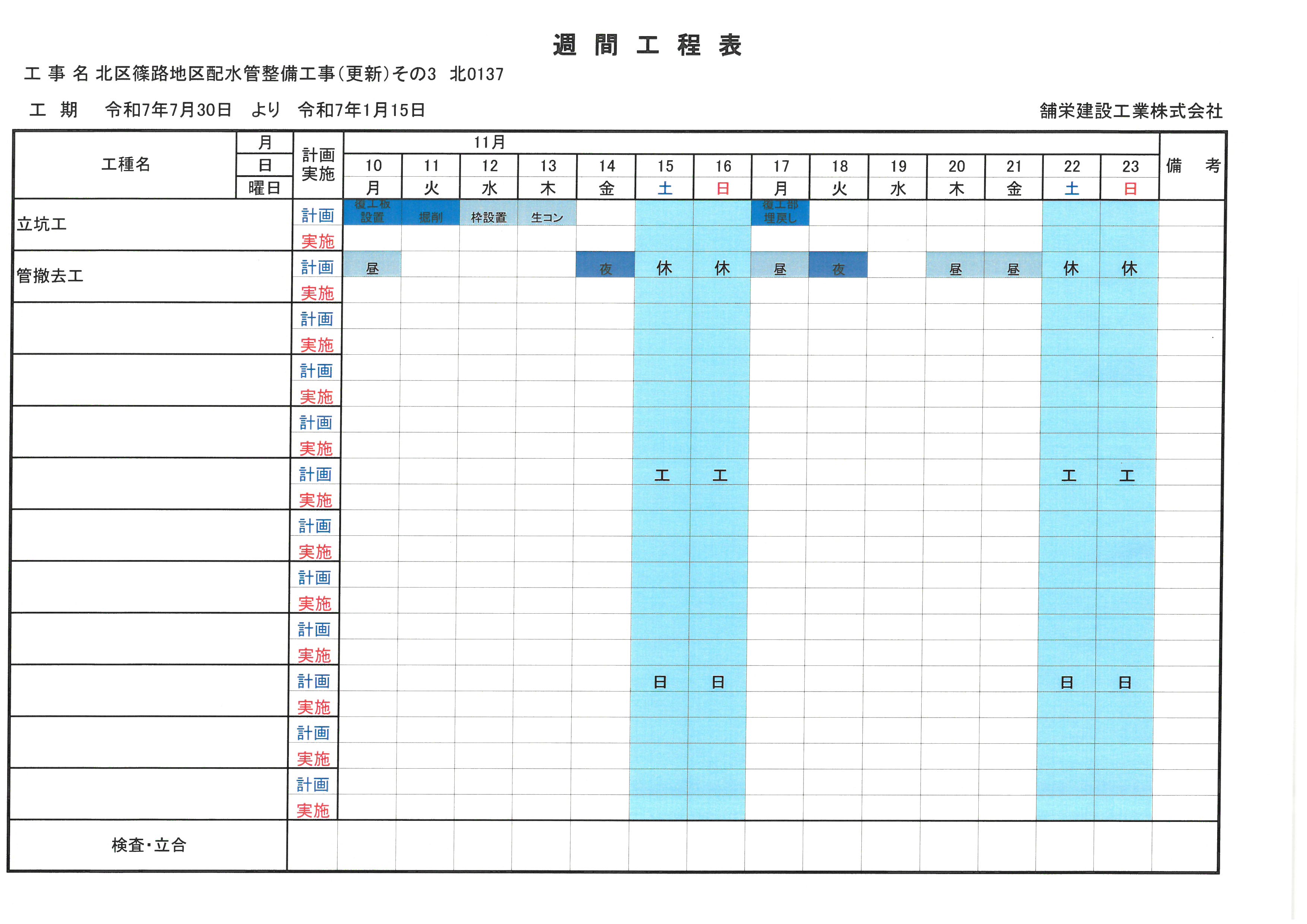 週間工程表