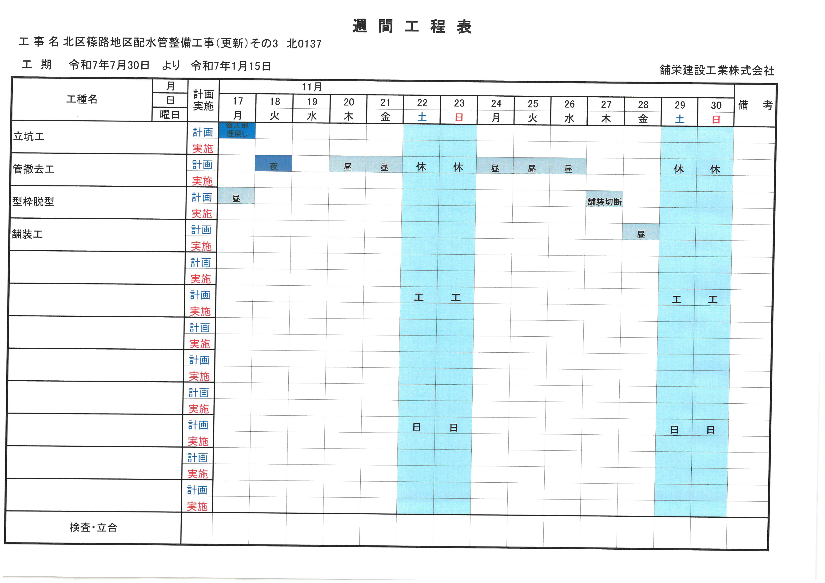 週間工程表