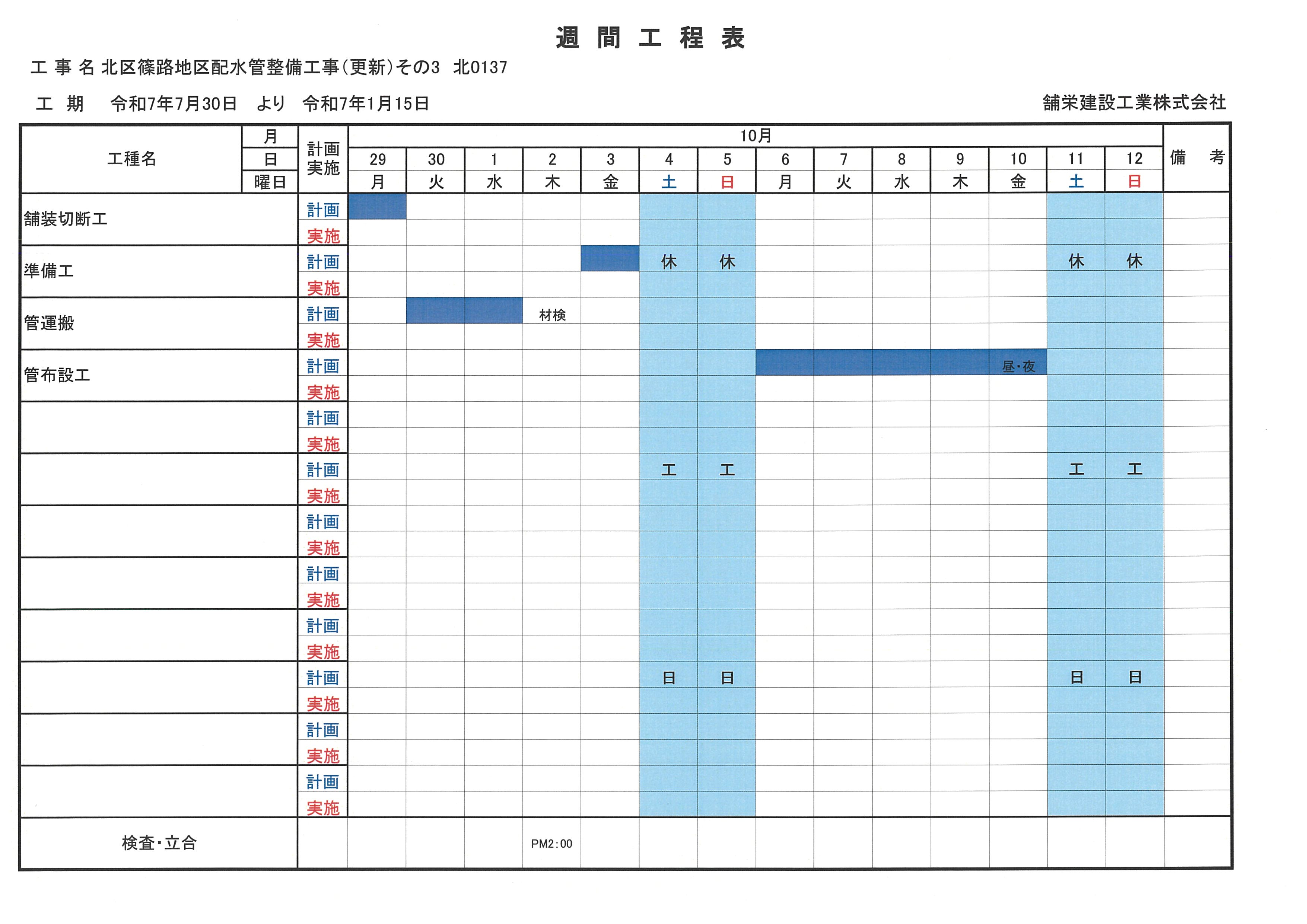 週間工程表