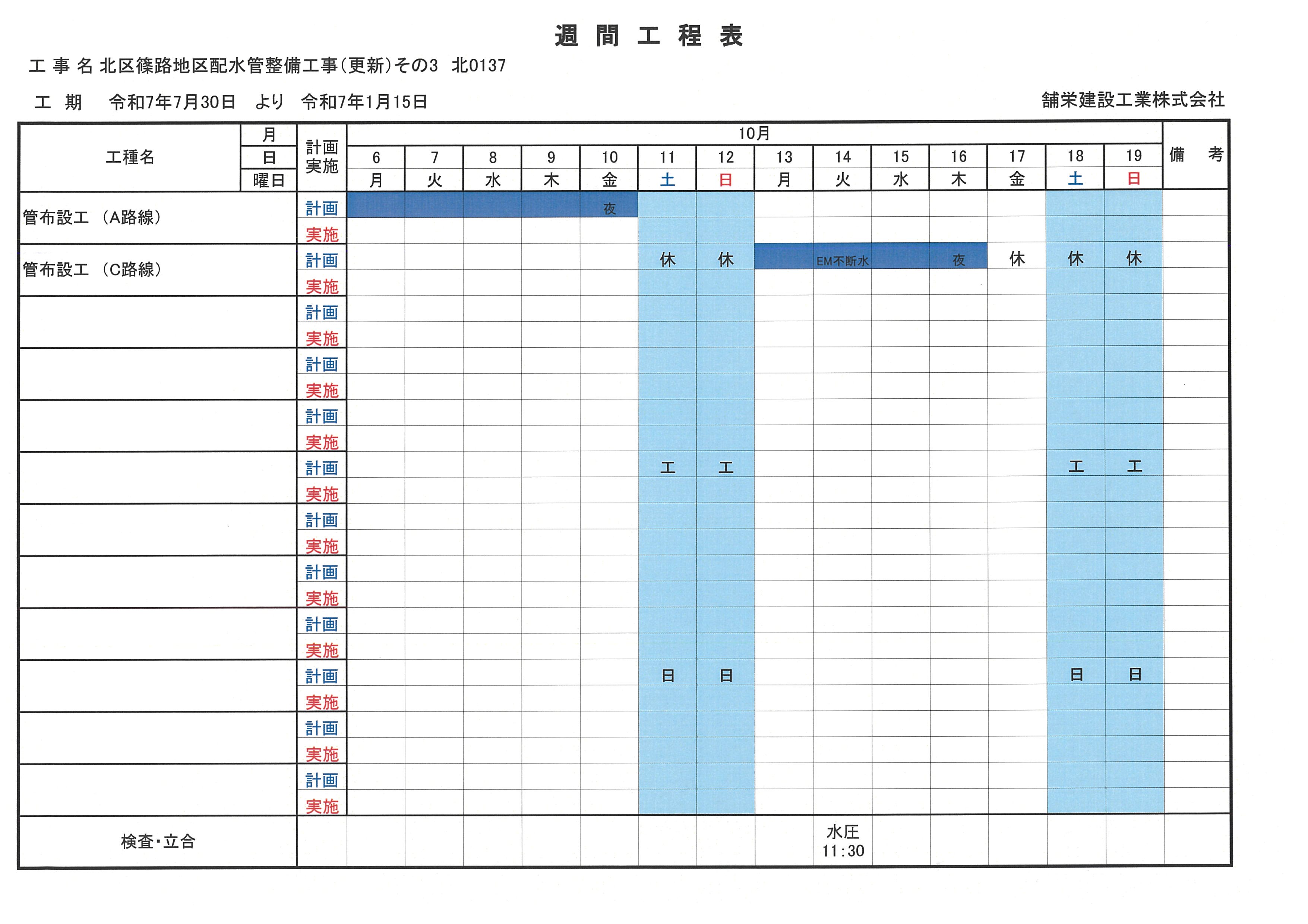 10月6日より本工事が始まります。11月下旬迄、騒音や交通規制等でご迷惑をお掛けしますが安全第一で作業を行いますのでご協力宜しくお願い致します。